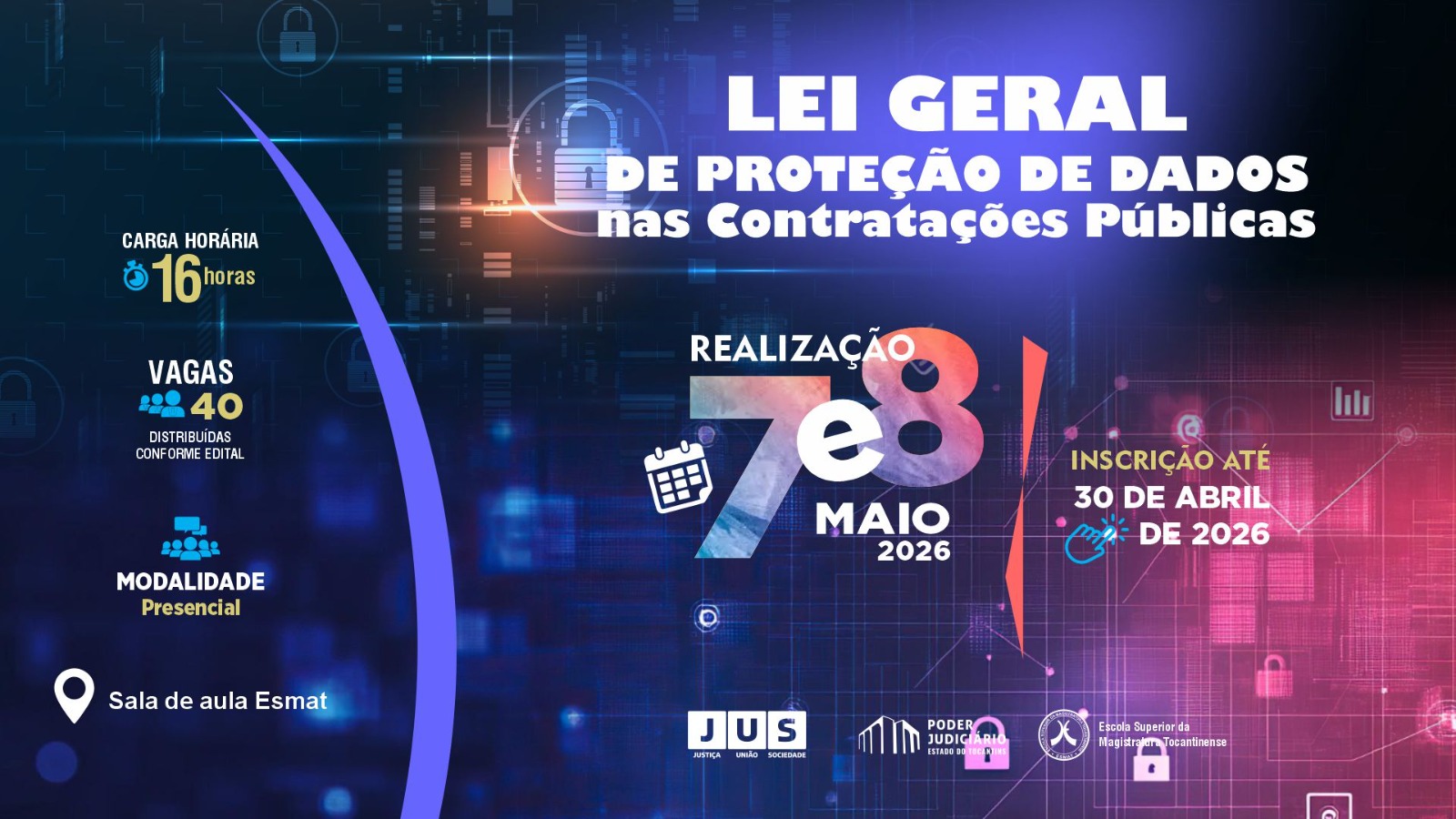O tratamento de dados pessoais passou a ocupar lugar central na rotina das instituições públicas, especialmente em processos que envolvem contratações, fornecedores, sistemas governamentais e compartilhamento de informações. Para aprofundar esse debate no âmbito do Poder Judiciário Tocantinense (PJTO), a Escola Superior da Magistratura Tocantinense (Esmat) realizará, nos dias 7 e 8 de maio, o curso Lei Geral de Proteção de Dados nas Contratações Públicas.