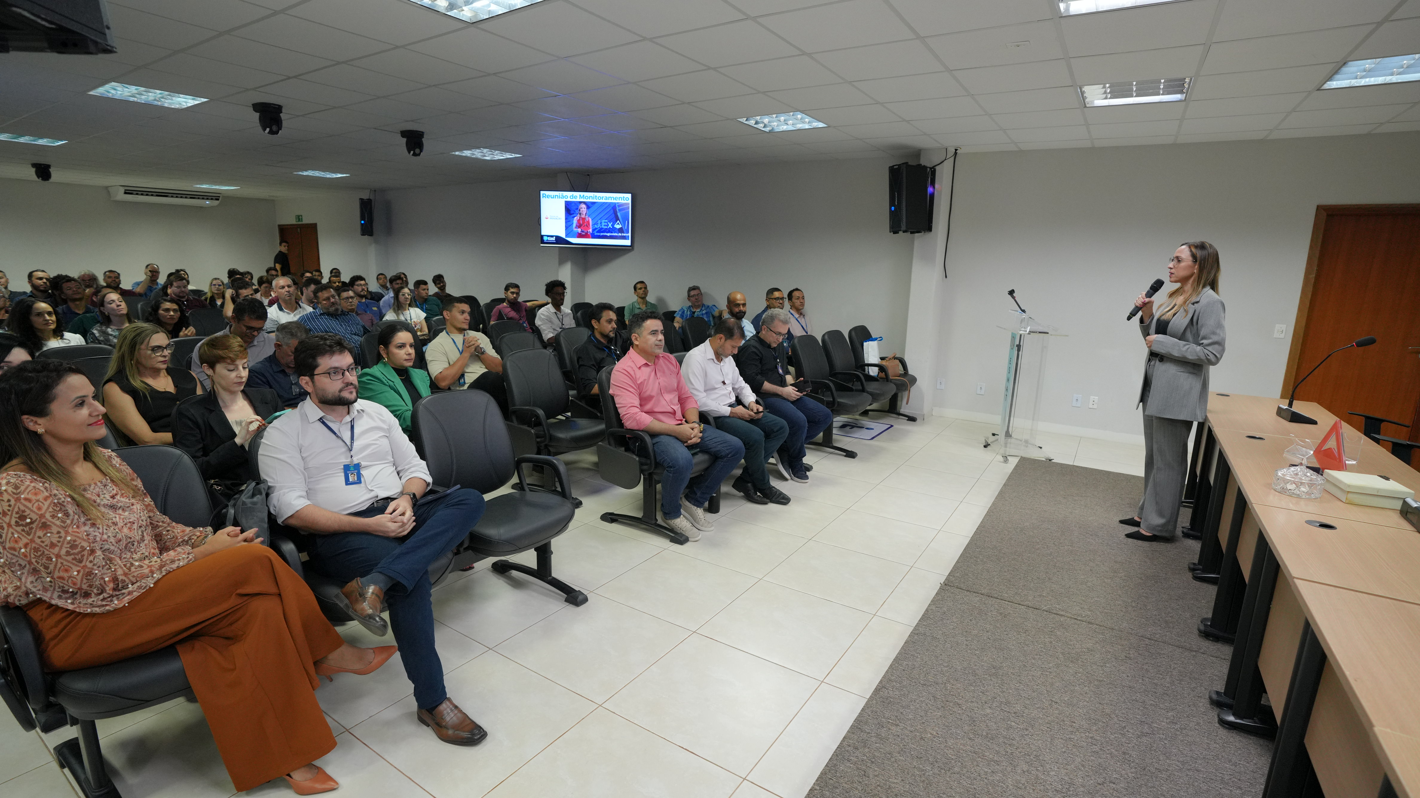 Realizada no auditório da Escola Superior da Magistratura Tocantinense (Esmat), a reunião de alinhamento e acompanhamento das ações da Diretoria de Tecnologia da Informação do Tribunal de Justiça do Estado do Tocantins (DTINF/TJTO) marcou o encerramento de um ano de grandes avanços para a área. À frente de uma equipe composta por 96 servidores(as), a diretora Alice Setúbal conduziu o encontro nessa última sexta-feira (12/12), destacando os principais resultados alcançados em 2025 e reforçando o espírito colaborativo que impulsiona a inovação no Judiciário Tocantinense.