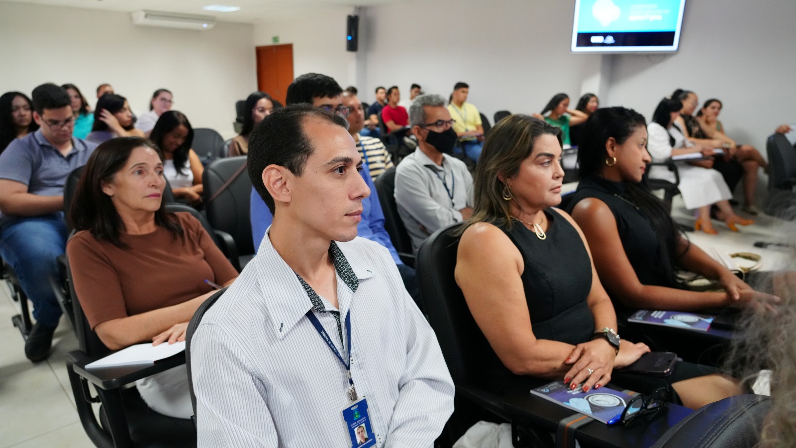 Inicialmente previsto para ocorrer em formato híbrido, com transmissão ao vivo para as comarcas do interior, o curso foi realizado exclusivamente de forma presencial, devido a instabilidades técnicas na conexão de internet. Os(As) inscritos(as) das demais comarcas receberão, por e-mail, uma nova data para participação em outra turma.