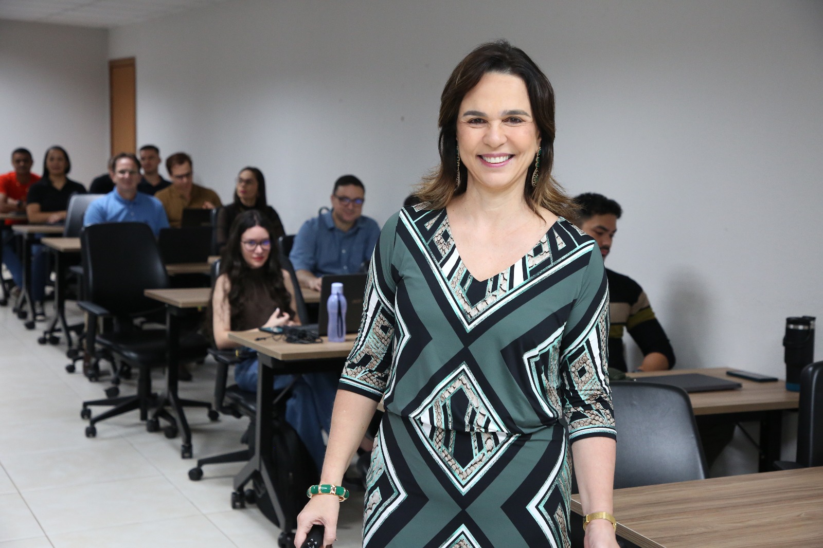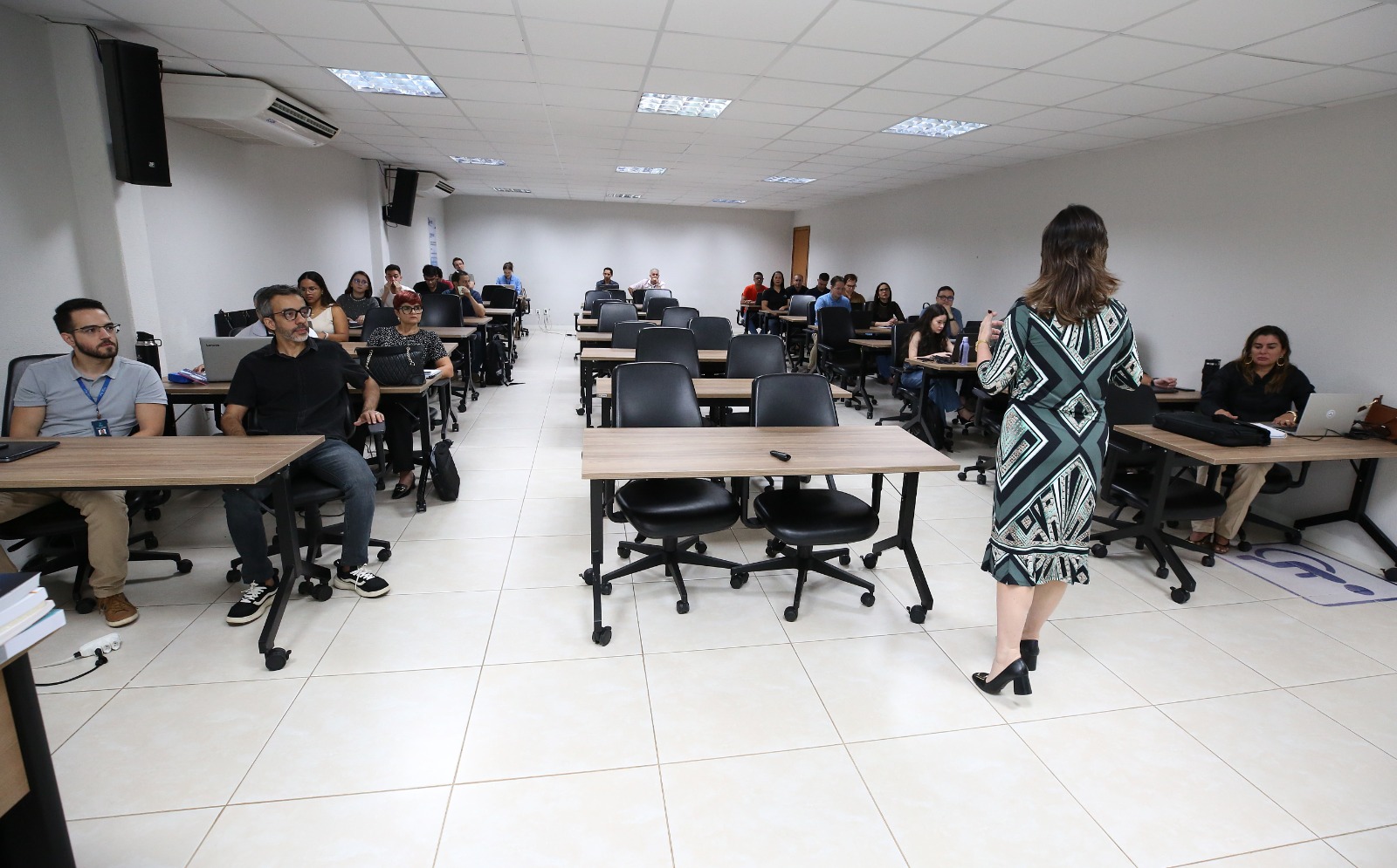 A capacitação foi conduzida pela professora Tatiana Camarão, mestra em Direito Administrativo, com o objetivo de fortalecer a atuação técnica dos(as) participantes no uso de ferramentas previstas na Lei nº 14.133, de 2021, além de promover práticas mais sustentáveis, íntegras e eficientes nas contratações públicas.